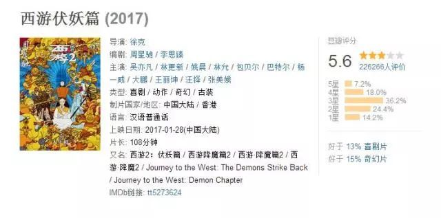 同時期上映的大型奇幻電影《悟空傳》《西游伏妖篇》也面臨了這樣的窘境,豆瓣評分均沒有及格,觀眾的評論也是故事亂七八糟,唯一能看的只有特效。