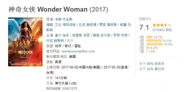 與中國奇幻電影正好相反的是,國外的奇幻電影,如《正義聯(lián)盟》《神奇女俠》等還是牢牢的占據(jù)吸金神位,觀眾看完后評分不說很高卻也都在7分左右的及格分。