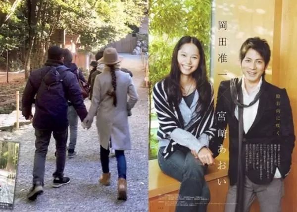 岡田準一大宮崎葵五歲,早在2012年合作歷史片《天地明察》時擦出火花,然而當時宮崎葵尚未與同為演員的丈夫高岡蒼甫離婚。在與丈夫離婚后,二人經(jīng)常被拍到出雙入對,2016年更被曝出同居照,隨后秀恩愛越發(fā)高調(diào),外界普遍認為二人好事將近。